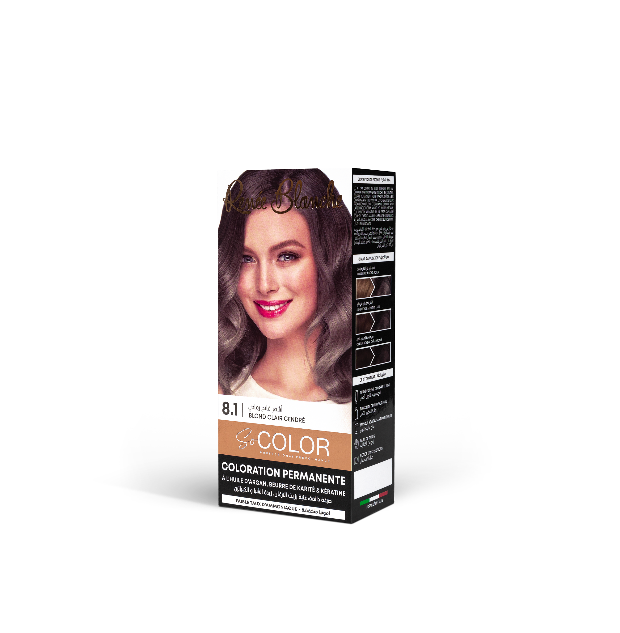 La Coloration Permanente SoColor Blond Clair Cendré 8.1 offre une nuance de blond clair aux reflets froids et distingués, spécialement formulée pour neutraliser les reflets jaunâtres ou cuivrés indésirables tout en assurant une couverture totale des cheveux blancs.
