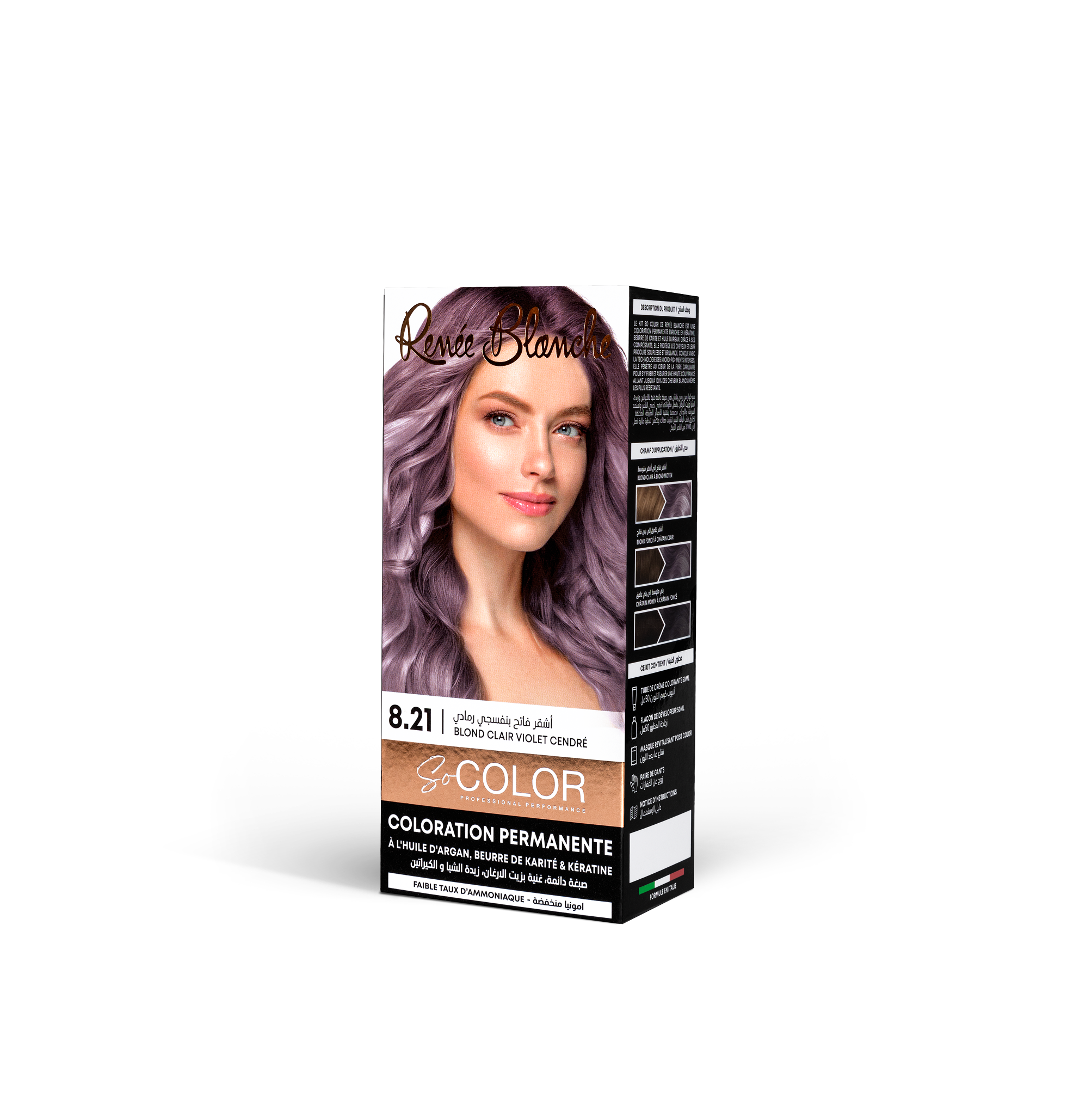& Free ShippingLa Coloration Permanente SoColor Blond Clair Violet Cendré 8.21 offre une nuance de blond clair aux reflets irisés et froids. Cette combinaison experte de pigments violets et cendrés est spécialement conçue pour neutraliser les reflets jaunes indésirables tout en apportant une luminosité sophistiquée et une couverture totale des cheveux blancs.
