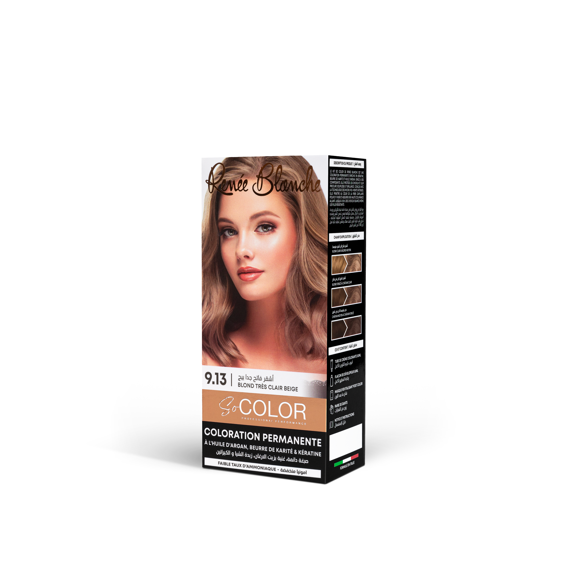 & Free ShippingLa Coloration Renée Blanche So Color Blond Très Clair Beige 9.13 est une coloration permanente professionnelle qui offre un blond très clair aux nuances beiges naturelles et élégantes.