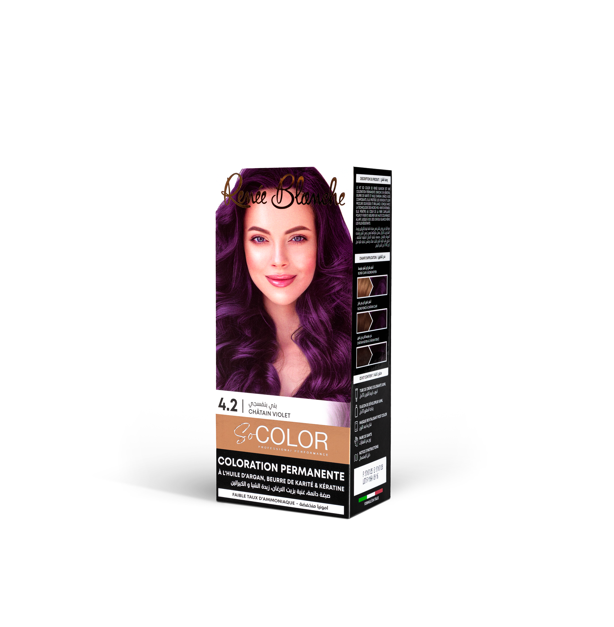 & Free ShippingLa Coloration Permanente SoColor Châtain Violet 4.2 offre une nuance de châtain intense et profond, magnifiée par des reflets violets riches et vibrants. Cette teinte sophistiquée est idéale pour apporter une touche d’audace et une brillance multidimensionnelle à la chevelure, tout en assurant une couverture totale des cheveux blancs.